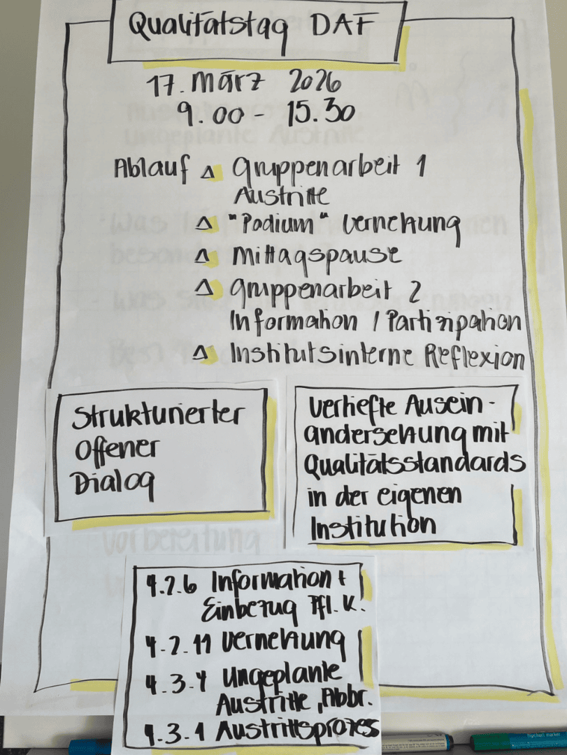 Der 1. Qualitätstag war ein gelungenes Zusammenkommen von 33 Personen unserer DAF-Mitgliederorganisationen und des Vorstandes. Das Ziel des Qualitätstages, welcher alle drei Jahre stattfindet, ist es, uns intensiv mit unseren Qualitätsstandards und ihrer Umsetzung zu befassen. Es ist uns ein grosses Anliegen, dass die Standards nicht nur auf dem Papier oder auf der Website aktiv sind, sondern dass sie präsent [...]